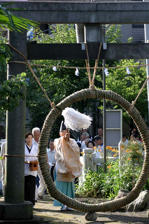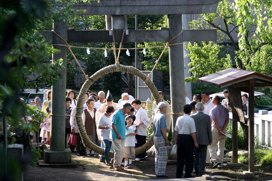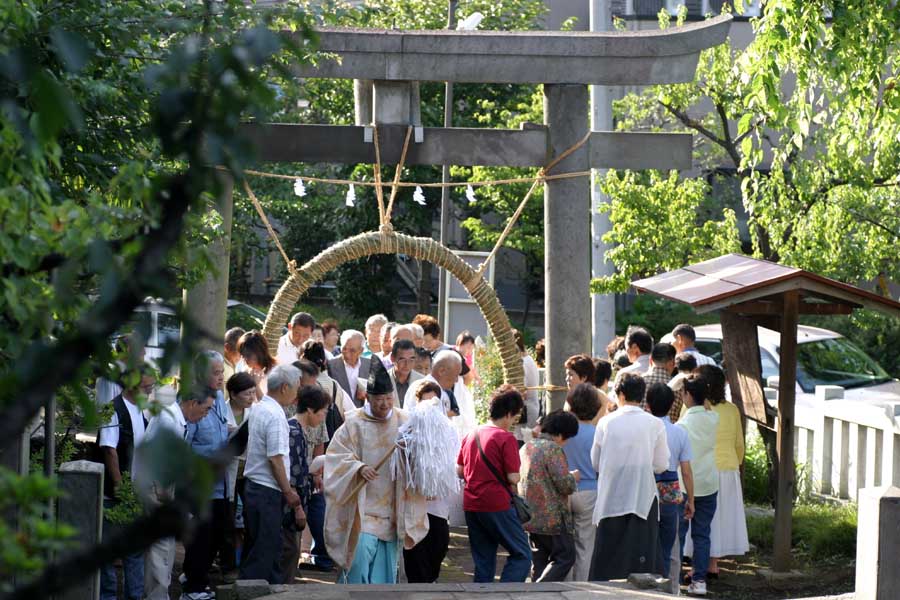 くぐり方は左まわり・右まわり・左まわりと、八の宇を書くように三度くぐり抜けます。 こうして、心身ともに清らかになって、あとの半年間を新たな気持ちで迎えるのです。