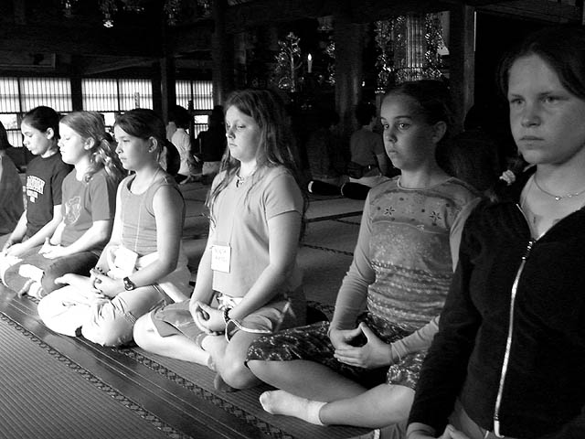オーストラリア・クイーンズランド州立クーパル小学校児童+日本の学生、父母合計60名一堂に会しての坐禅会です。