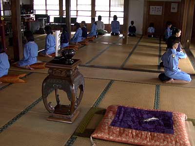 坐禅会の報告 平成12年2月13日、地元ガールスカウト参加による坐禅会がありました。 28名が坐禅を2チュウ行じ、その後お茶会を開きました。皆さんとても真剣に取り組んでいる様子が印象的でした。 Zazenkai-meeting with members of the Girl Scouts were took place on 13th Feb.