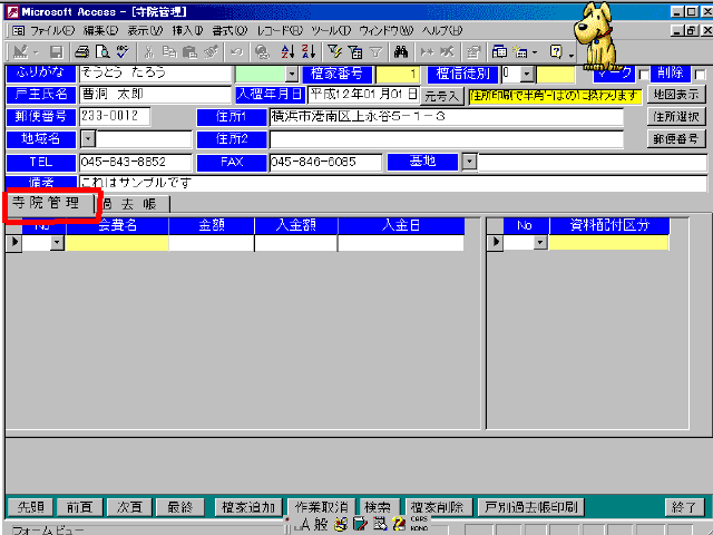 続けて次の檀家を入力するときは、下の「檀家追加」ボタンをクリックします。