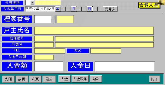メインメニュー画面より「会費入金・編集」をクリックした時の画面です。