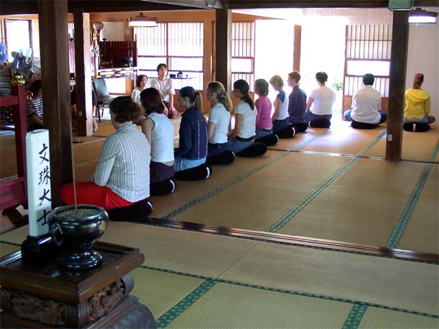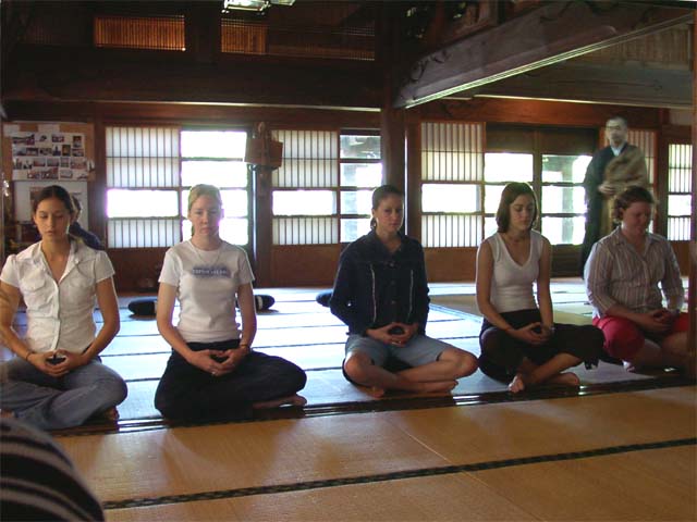 平成14年9月23日、地域の国際交流の会 KIRA=Kaminagaya International Relationship Association 主催による坐禅会が貞昌院で開かれれました。 昨年に引き続き第6回目、オーストラリア・クイーンズランドのエメラルド高生徒 約20名の参加がありました。KIRA役員の皆さん、お疲れ様でした。ご報告としてこのページを作成いたしました。