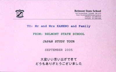 今年は、クイーンズランド州立ベルモント小学校の児童18名及び父母、先生など総勢30名が訪れました。