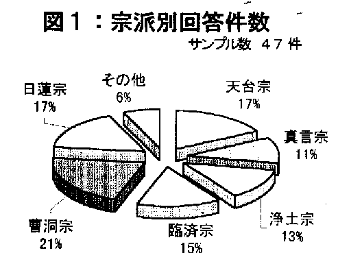 送信数65のうち、有効回答として得られたのは47通(72%)であり、その宗派別内訳は図1の通りである。