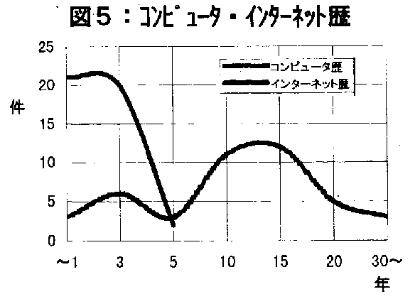結果を見ると、コンピュータを十年間以上使用してきている人がほとんどであった。寺院の運営上、過去帳や会計など、コンピューターを活用している寺院の数はかなり多いものと思われるが、インターネットという外部のネットワークと接続するのには多少心理的抵抗があるためと推測される。しかし、次第にコンピュータの家電化が進み、今後はより短い期間でネットワークに接続する傾向にあると思われる。(図に見られる第2のピークはこれである)