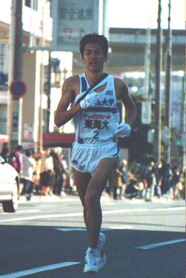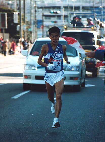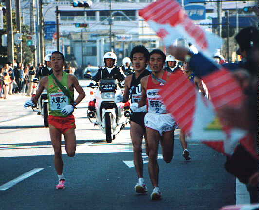 駒大は、3、2、2位とたすきをつなぎ、4区でエースの藤田敦史選手が、これまでの区間新記録を大幅に塗り替える見事な走りで一気にトップに立った。最後の難関、箱根の山登りでも、神屋伸行選手が、1年生ながら安定感たっぷりの走りをみせ、ガッツポーズで芦ノ湖のゴールテープを切った。