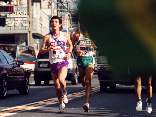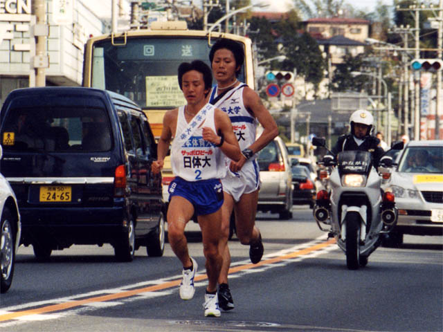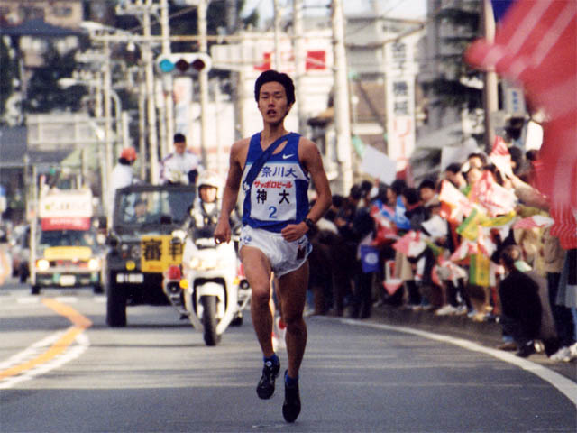 「5区」駒大・田中と2位早稲田・五十嵐の差はなかなか縮まらない。そんな中、神大・吉村が順調にペースを上げる。駒大はややペースを落とし、早大、神大、さらに順大が僅差で迫ってきた。強い向かい風の中、神大・吉村15キロ地点で早稲田をかわし、直後に駒澤をとらえ首位に。ゴールのテープは、神大が切った。以下2位・駒澤、3位・順大、4位・早稲田の順。