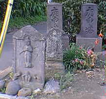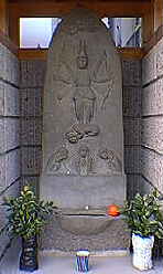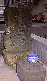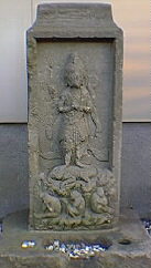 山門の左側に刻像と文字塔のふたつがまつられています。刻像の馬頭観音はこの近辺では珍しいものです。