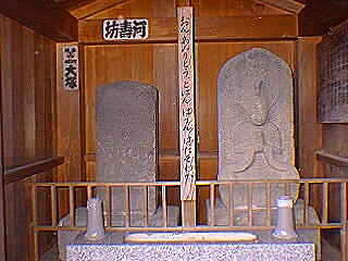 柳橋交差点を北にはいったところにあります。二基並んだ文字塔であり、右側が天明8年、左側が慶應元年建立です。