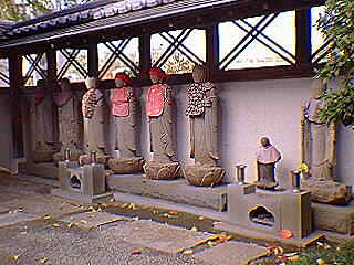 山門を入って左側にあります。年代の詳細は分かりませんが、六地蔵の他にニ体の小さな地蔵様がまつられています。