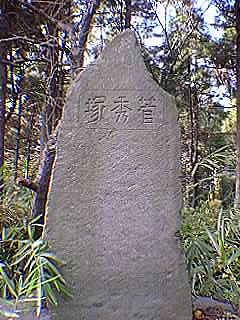 社殿から左の山道を登った途中、大きな樫の樹の下にあります。
