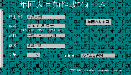 あとは必要な項目を入力して、右の「年回を印刷」をクリックするだけです。