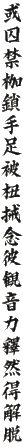 或いは 囚えられ枷鎖(くびかせくさり)に禁せられて 手足に手かせ足かせを被らんに 彼の観音の力を念ぜば 釈然として解脱することを得ん |
