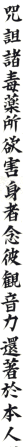 呪詛(じゅそ)や諸の毒薬に 身を害せんと欲られん者 彼の観音の力を念ぜば 還(かえ)って その本人に著(つ)きなん |