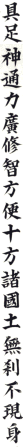 神通力(じんづうりき)を具足し 広く智の方便を修して 十方の諸(もろもろ)の国土に 身を現(あらわ)さざる刹(ところ)無し |