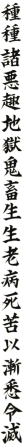 種種の諸(もろもろ)の悪趣(あくしゅ) 地獄鬼畜生 生老病死の苦 以(も)って漸(ようや)く悉(ことごと)く滅せしむ |