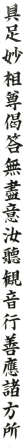 妙相を具足したまえる尊は 偈をもって無尽意に答えたまわく 汝 観音の行の 善く諸(もろもろ)の方所に応ずるを聴け |