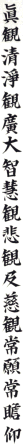 妙音なる観世音は 梵音(ぼんのん)なり海潮音(かいちょうおん)なり 彼(か)の世間の音に勝(すぐ)れたり 是の故に須(すべから)く常に念ずべし |