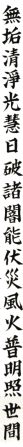 無垢(むく)清浄(しょうじょう)の光あって 慧日(えにち)諸(もろもろ)の闇を破り 能(ことごと)く災いの風火を伏して 普(あまね)く明らかに世間を照らす |