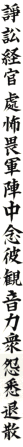 諍訟(いさかい)して官処を経(へ) 軍陣の中に怖畏(ふい)せんに 彼の観音の力を念ぜば 衆(もろもろ)の怨(うらみ)は悉(ことごと)く退散せん |