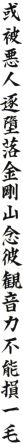 或いは 悪人に逐(お)われて 金剛山より堕落せんに 彼の観音の力を念ぜば 一毛をも損ずること能わじ |