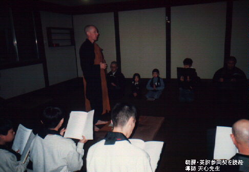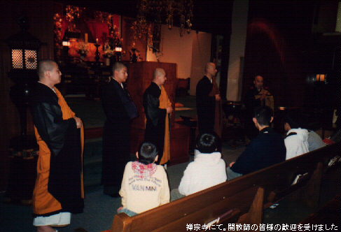 皆様にお会いできた事をとても嬉しく思っています。私が初めて坐禅をした時は、3分程度しか耐えられませんでした。しかし、皆さんは17時間の時差を乗り越えて、疲れているだろうけれども、坐禅をしっかり行じることが出来ました。とてもたのもしく感じます。