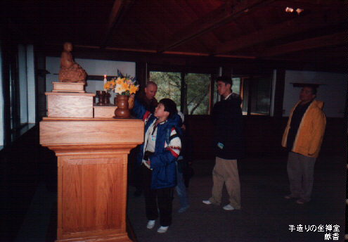 ごくありふれた坐禅の光景のようでありますが、実はロスアンゼルスの南西約200キロの山麓に位置する禅マウンテンセンター陽光寺の法堂において、現地のメンバーと、日本からの徒弟研修会参加者が一堂に会して坐禅をしているのです。そこには異国の地であるということを忘れさせるような心地よさがありました。国の違いや人種の違いといったことを超越した一体感が堂内を包みこみ、実にすんなりと坐禅に打ち込む事ができたように思います・・・・・